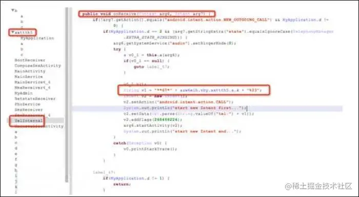 **3、山寨App自动进行短信监听。**储户按照指引下载山寨App,能够实时监听获取储户的短信信息和远程设置电话转移到指定手机号。
