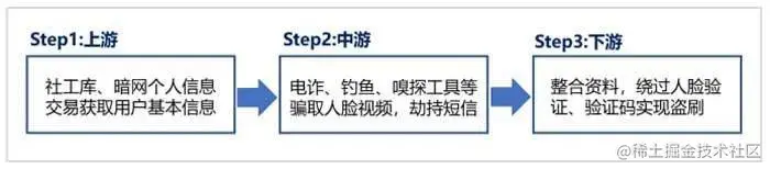 按照常规状态。银行交易场景下有专业的业务安全风控机制,任何异常操作或行为都会触发风控,激发银行短信、外呼语音、人脸等多重验证。黑灰产如果要实现储户资金的盗取,通过暗网交易、电信诈骗、钓鱼链接方式,收集储户的信息,以便于进行登录、验证、转账。然后,入侵银行App的人脸识别系统,通过劫持摄像头,替换提前准备好的虚假人脸视频,绕过人脸识别验证;最后通过嗅探工具、短信劫持软件、设置短信转发等方式获取储户的短信验证码,实现转账盗刷行为。