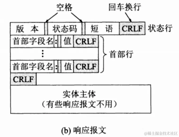 HTTP 请求报文和响应报文都是由三个部分组成的: