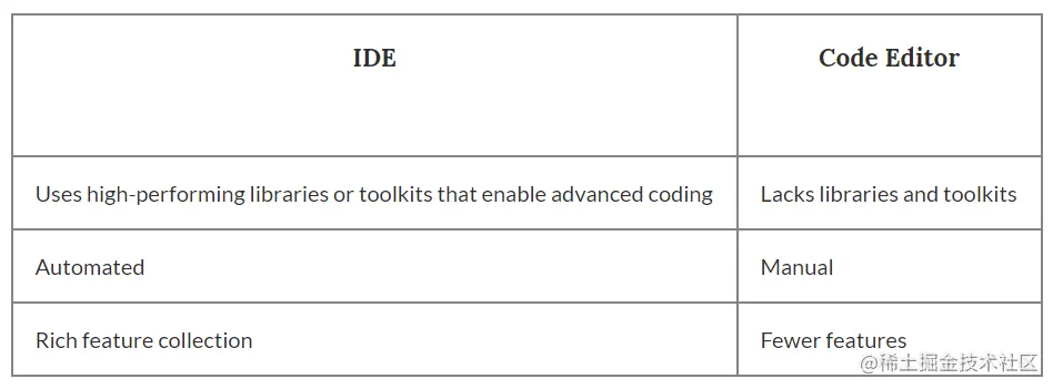 有一个与 IDE 相似的术语——代码编辑器(code editor)。我们先来探讨二者的异同。