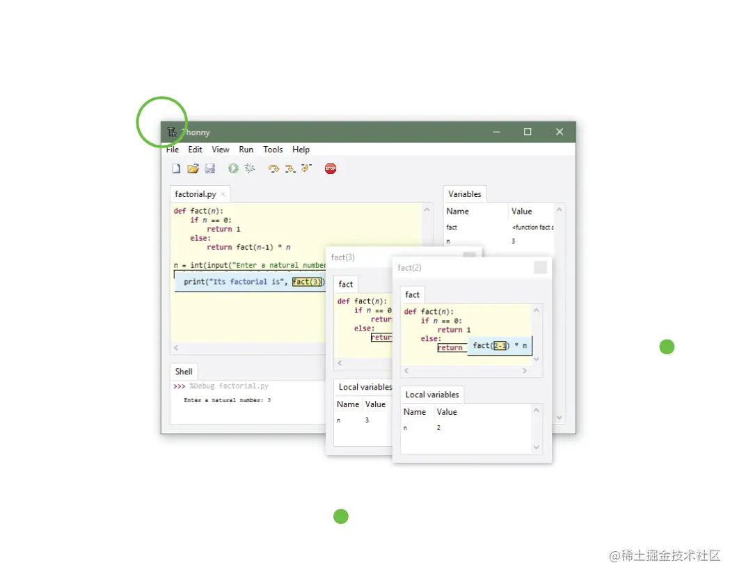 Thonny 由塔尔图大学开发,适合新手程序员。其界面没有任何复杂或多余功能,很容易上手。另一个适合新手的地方是,你可以看到 Python 在每一步中对你的表达式的评估。