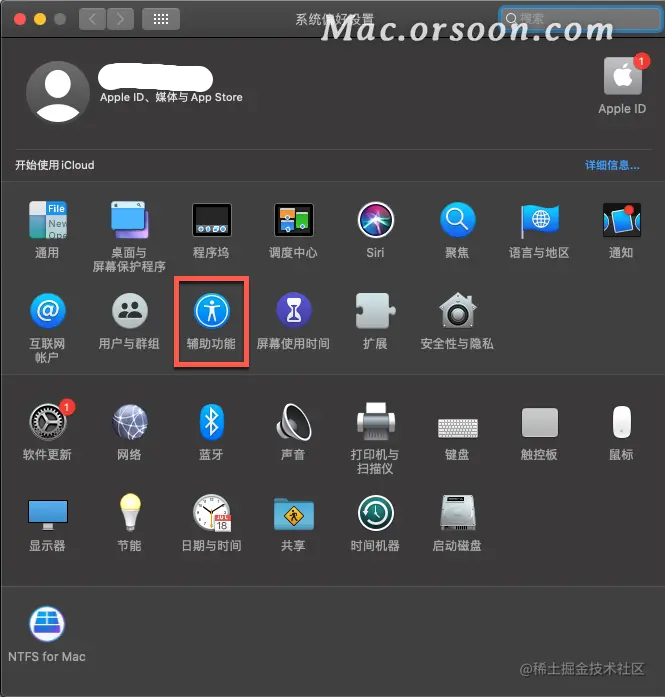 2.单击辅助功能。
