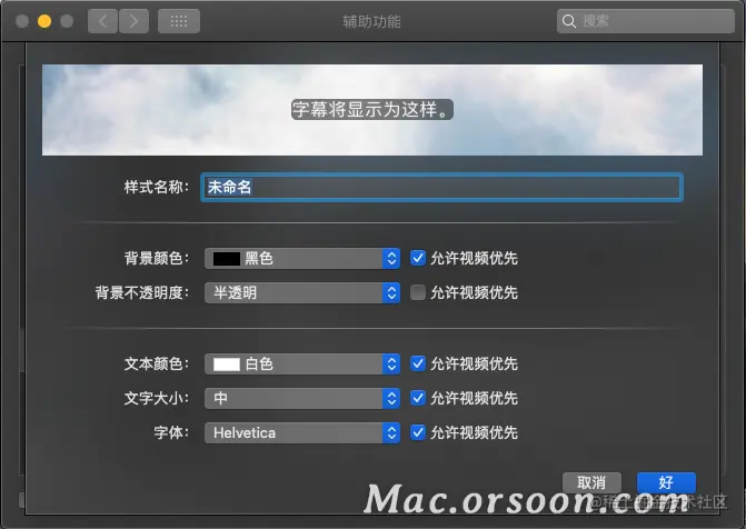 如果您不喜欢 macOS 提供的四种默认样式,您可以选择根据自己的喜好自定义隐藏式字幕。