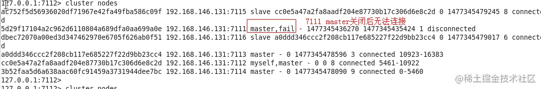 cluster nodes :列出集群当前已知的所有节点( node),以及这些节点的相关信息。