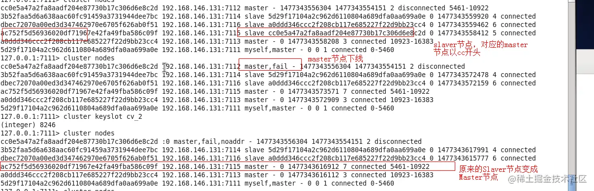 1)Master下线后,其对应的Slaver节点会自动变为Master节点,如下截图: