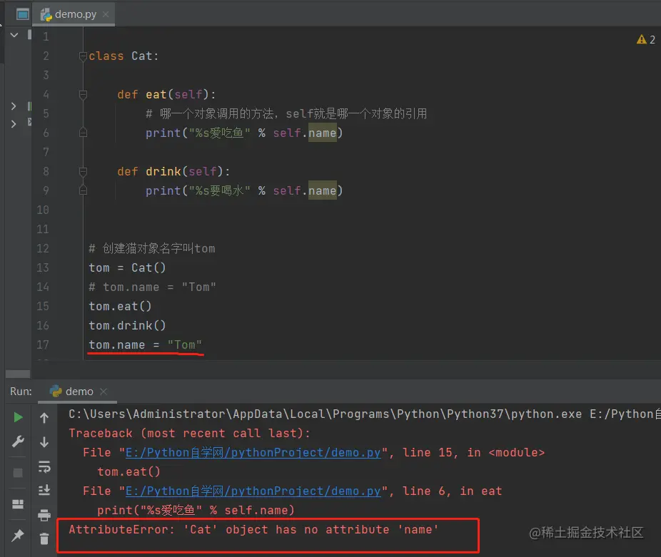 属性错误:Cat对象没有’name’属性