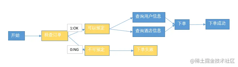 比如上例中【可以预定】和【不可预定】可以没有相应的业务逻辑,空跑一下转到后面的节点即可。