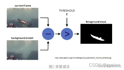首先,我们使用cv2.absdiff()函数找到背景模型和当前帧之间的绝对差异。