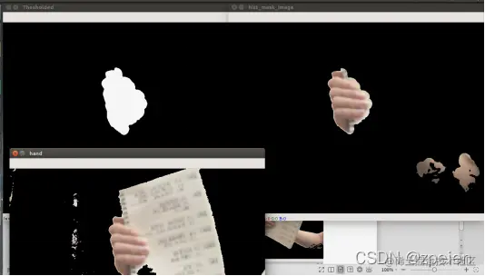 - 对前景进行肤色检测, 获取一个只含肤色区域的框架(hist_mask_image).