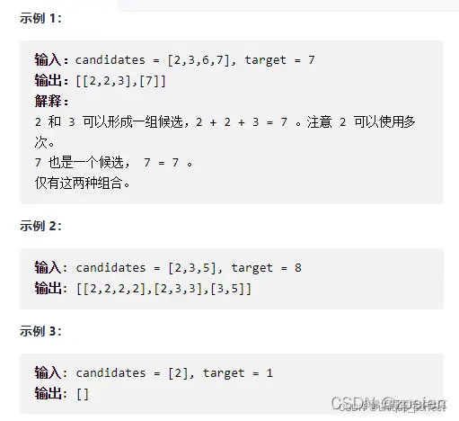 candidates 中的 同一个 数字可以 无限制重复被选取 。如果至少一个数字的被选数量不同,则两种组合是不同的。