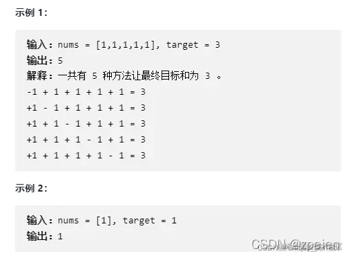 向数组中的每个整数前添加 '+' 或 '-' ,然后串联起所有整数,可以构造一个 表达式 :
