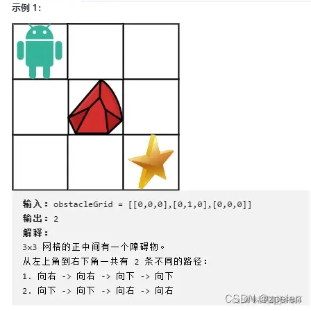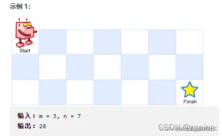 一个机器人位于一个 m x n 网格的左上角 (起始点在下图中标记为 “Start” )。