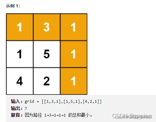 给定一个包含非负整数的 m x n 网格 grid ,请找出一条从左上角到右下角的路径,使得路径上的数字总和为最小。