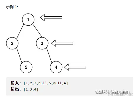 给定一个二叉树的根节点root,想象自己站在它的右侧,按照从顶部到底部的顺序,返回从右侧所能看到的节点值。