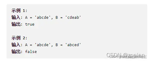 给定两个字符串, A 和 B。A 的旋转操作就是将 A 最左边的字符移动到最右边。 例如, 若 A = 'abcde',在移动一次之后结果就是'bcdea' 。如果在若干次旋转操作之后,A 能变成B,那么返回True。
