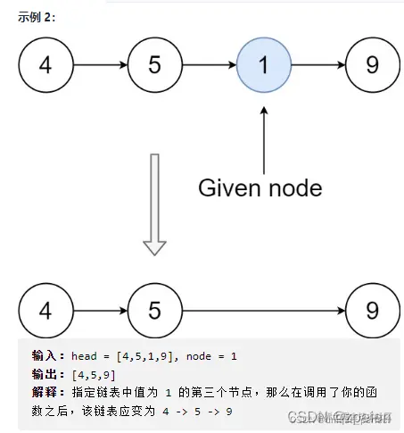 注意,你无法访问链表的头节点 head ,只能直接访问 要被删除的节点 。