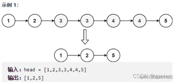 有重复的元素,使每个元素 只出现一次 。返回同样按升序排列的结果链表。