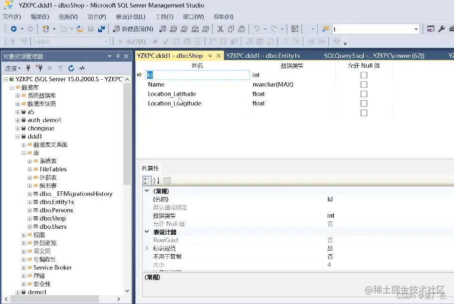 看,配置完之后,数据库存储时候会将Location展开为2个列,并且附加到shop表内。