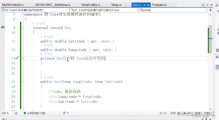 方式1 栗子:将坐标(经纬度)定义为值对象,设置构造函数,好处是在构造中就可以进行校验