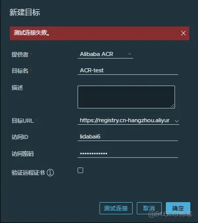 - 点击【连接测试】看Harbor与阿里云镜像仓库ACR是否可以正常连接。