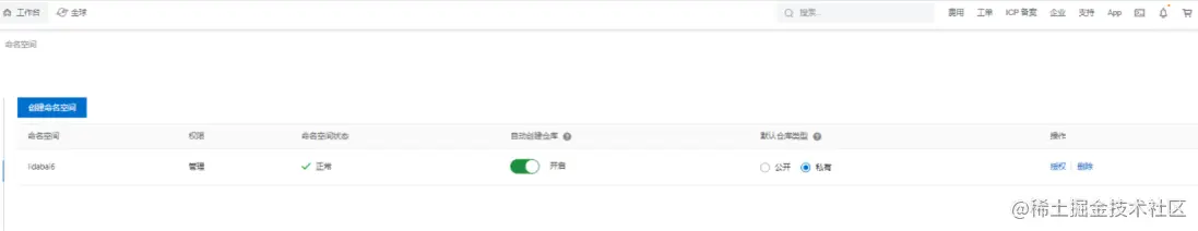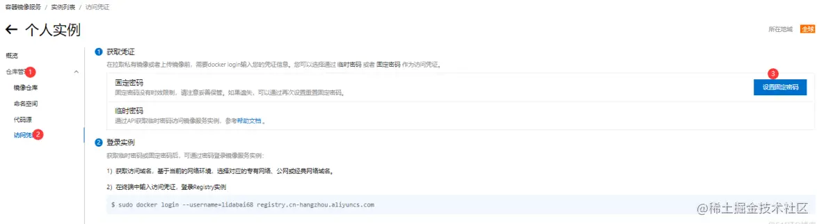 不同地域会不一样; - 访问ID:阿里云镜像仓库的命名空间名称;ram账户id;