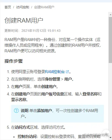 创建RAM用户(访问控制)