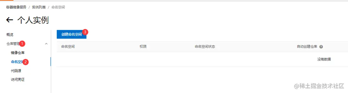 创建项目前需要先创建命名空间。一个账号最多可以创建 3 个命名空间。定义您的镜像仓库命名空间,设置后不可修改。长度为2-30位,可填写小写英文字母、数字,可使用的分隔符包括“_”、“-”(分隔符不能在首位或末位)
