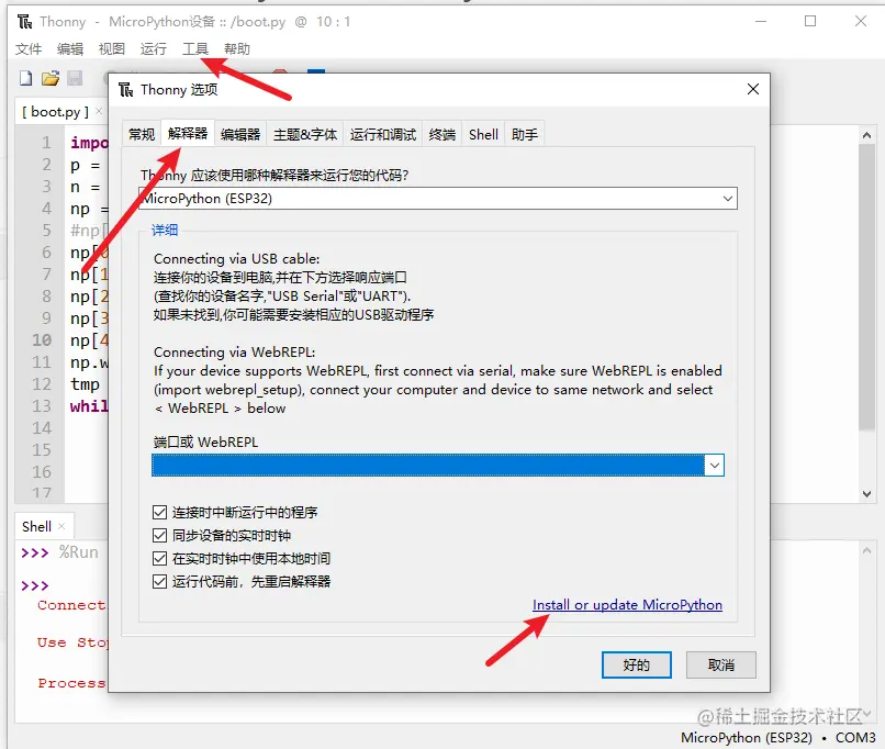 然后需要有一个micropython的编辑器,这里我推荐新手使用Thonny