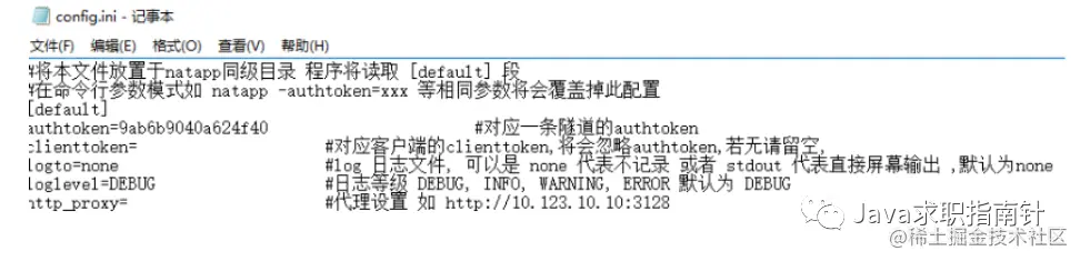 6、创建配置文件:config.ini 具体下载:natapp.cn/article/con…