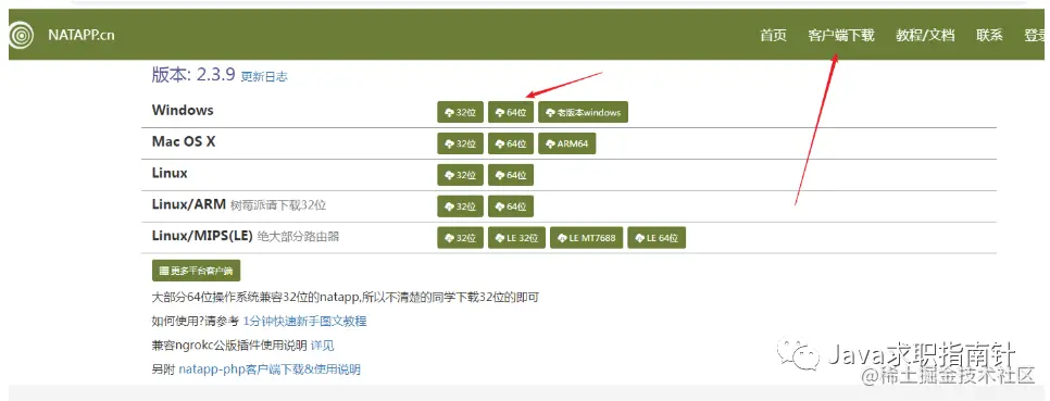5、下载客户端工具:根据你电脑情况选择合适的版本下载,这里我选用Windows64位