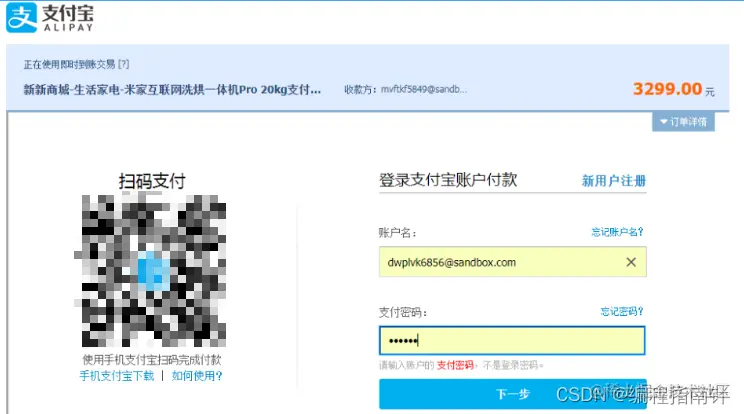 点击立即付款后进入支付宝付款流程