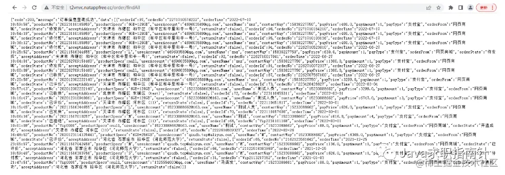 t2vnvc.natappfree.cc/order/findA… 查询所有订单:测试成功