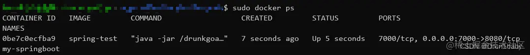 docker run -d -p 7000:8080 --name "这里给要 run 中的容器取名" springboot-demo(也就是你前面命名的) dockerid