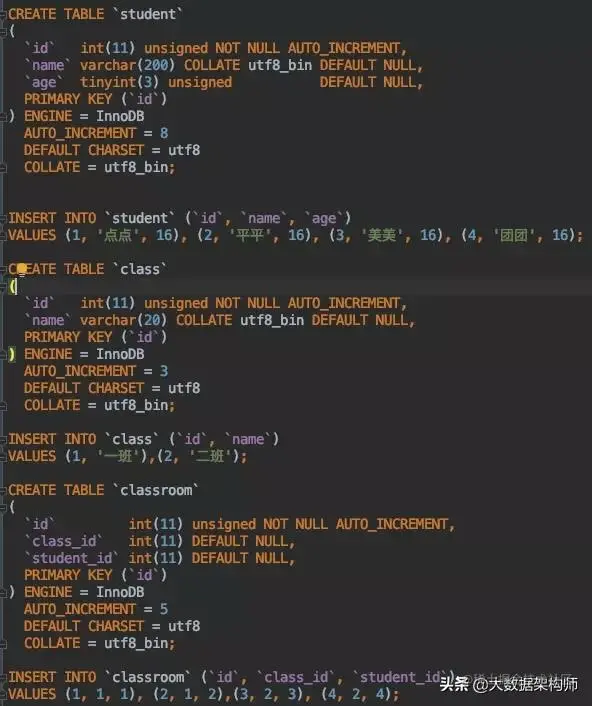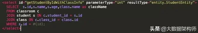 在这个实验中,我们引入了两张新的表,一张class,一张classroom。class中保存了班级的id和班级名,classroom中保存了班级id和学生id。我们在StudentMapper中增加了一个查询方法getStudentByIdWithClassInfo,用于查询学生所在的班级,涉及到多表查询。在ClassMapper中添加了updateClassName,根据班级id更新班级名的操作。