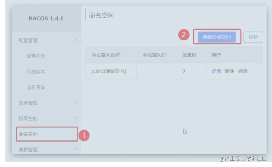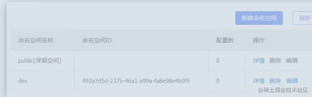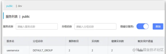 默认情况下,所有service、data、group都在同一个namespace,名为public: