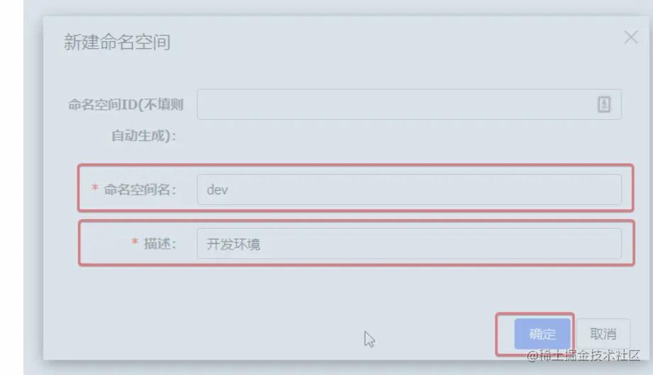 我们可以点击页面新增按钮,添加一个namespace: