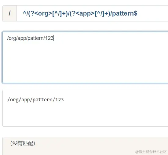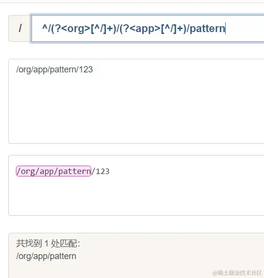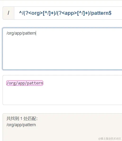 String regular = "^/(?<org>[^/]+)/(?<app>[^/]+)/pattern$";
