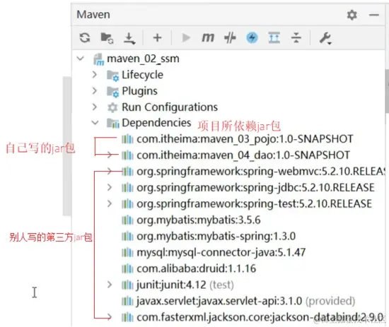 因为现在有依赖传递,所以maven_02_ssm能够使用到maven_03_pojo的内容
