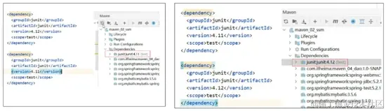 情况一: 在pom.xml中添加两个不同版本的Junit依赖:
