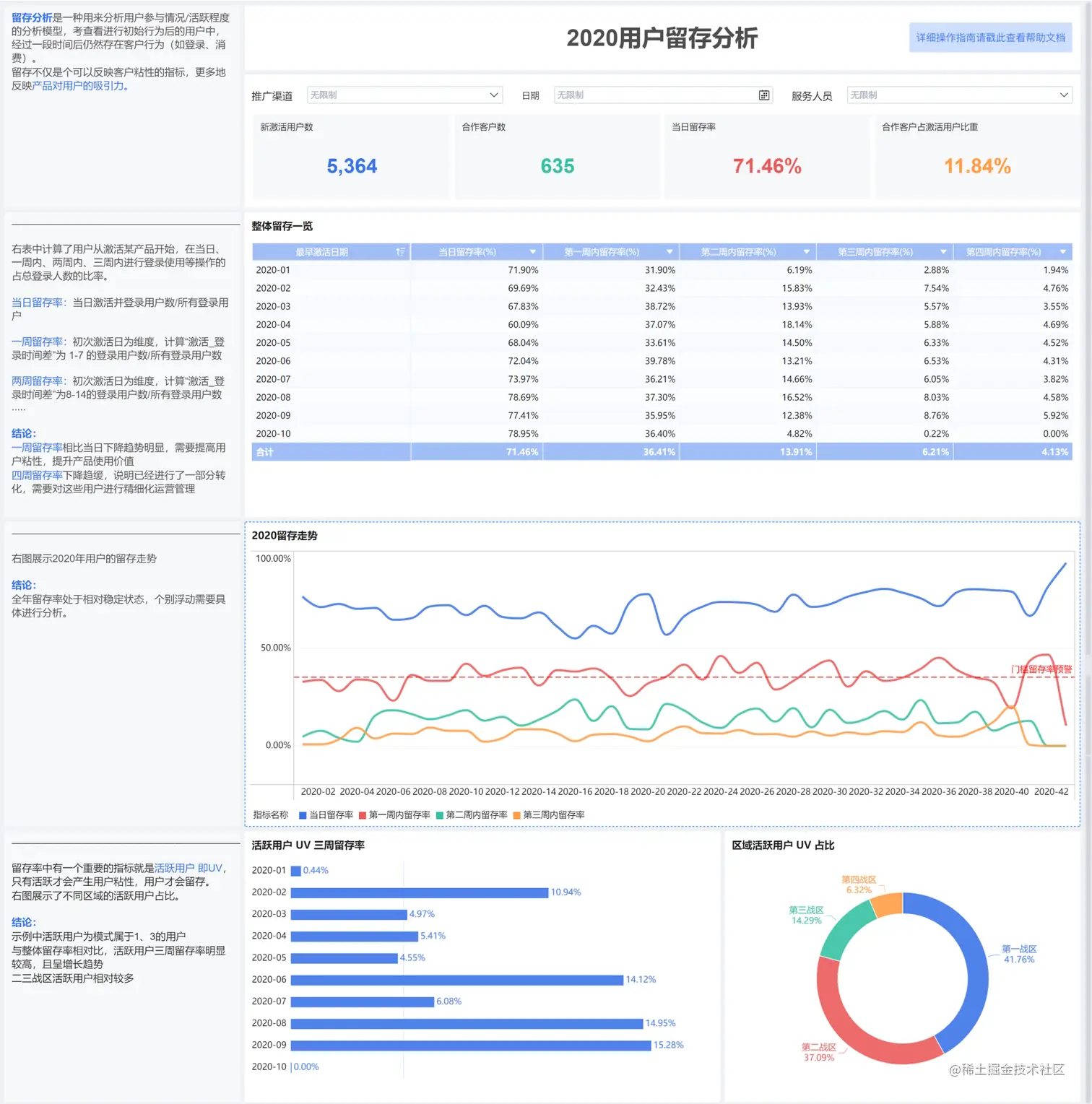 留存分析一般是产品运营会关注的,通过当日、单周、双周留存情况,来判断产品对于用户来说是否有吸引力,一般新产品刚出来的时候,就需要重点关注这个指标。