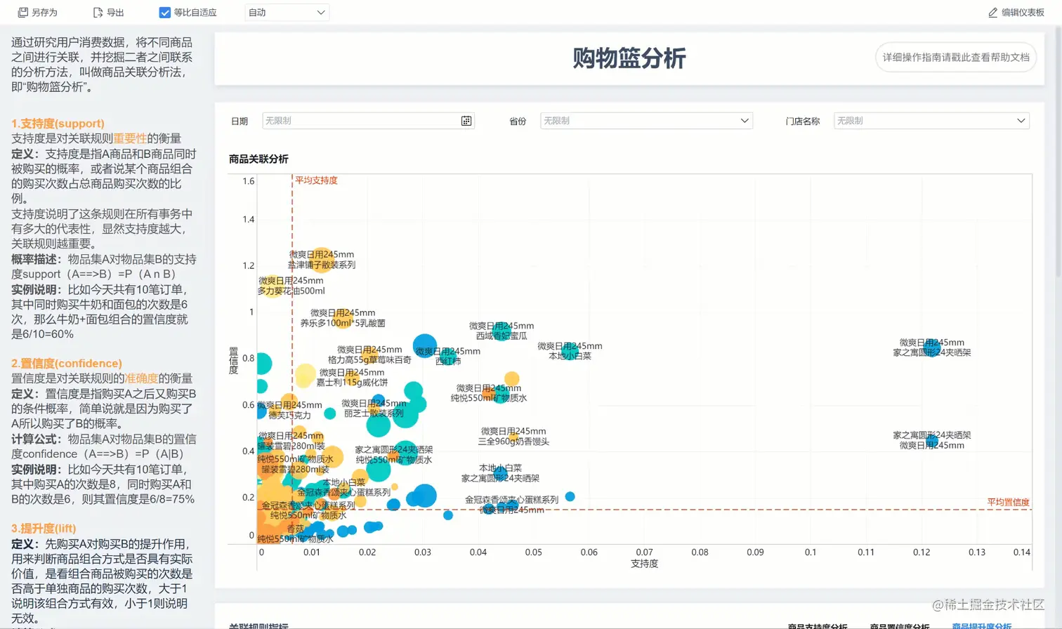 购物篮分析用于市场营销组合比较多,通过分析用户历史消费数据,将不同商品进行关联分析,找到关联性强的商品,进行合理陈列。