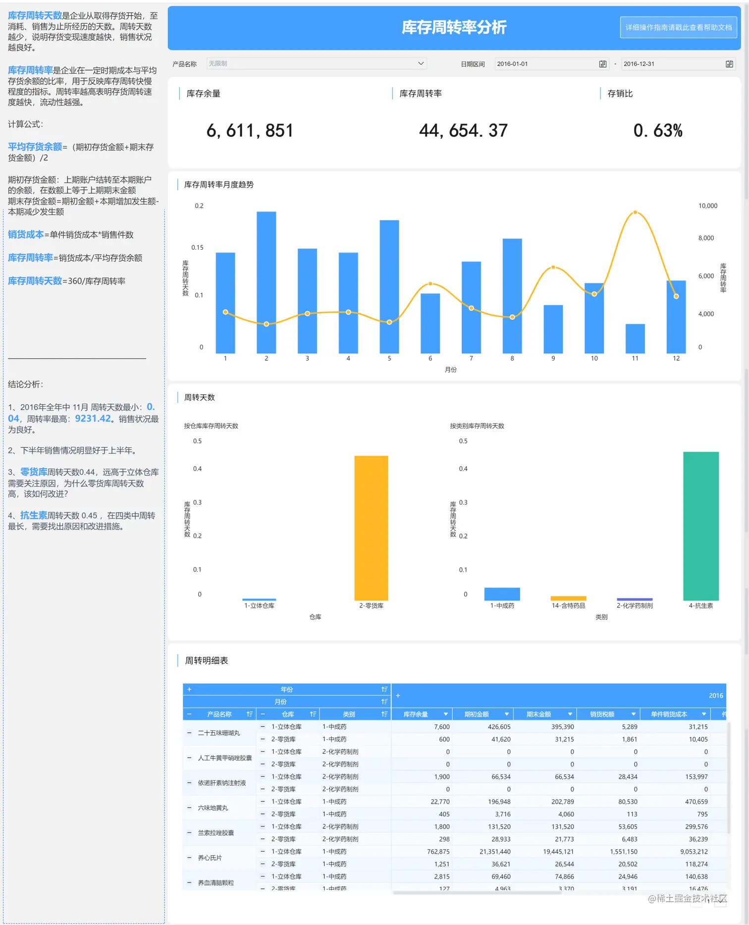 库存周转分析不仅是库存管理部门关注的,财务也很关注,库存周转天数越少,说明存活变现速度快,销售情况好。一旦库存周转出问题了,就该赶紧关注。