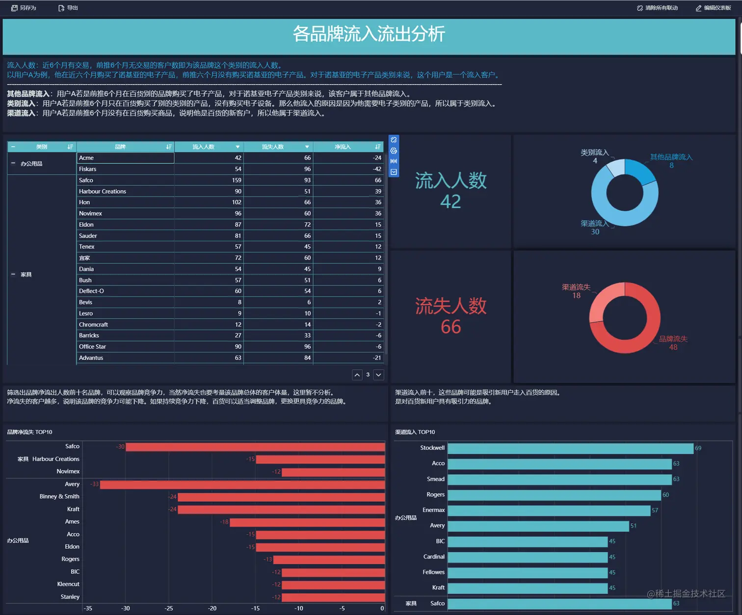 同一家公司经常需要进行产品迭代,这个模型就通过对于流入流出用户的分析,直观地展现出了产品的竞争力水平,便于进行迭代或者更替。