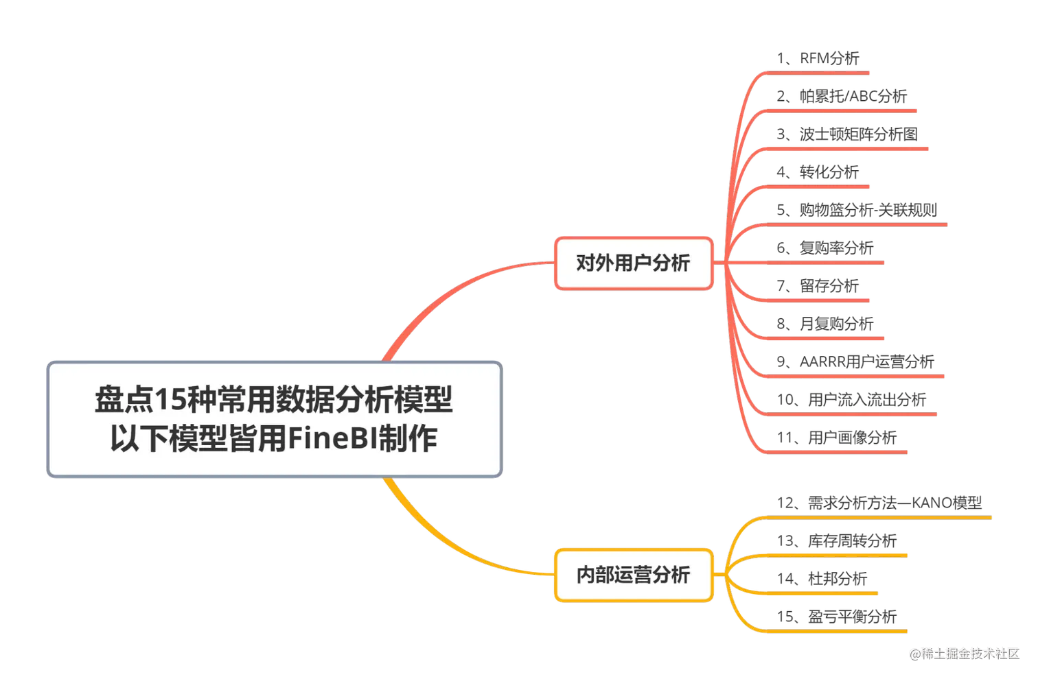 下面就跟大家分享15种用BI工具制作的数据分析模型,工具也一起放在文末了,基本都是10分钟就能搞定,想要提升数据分析能力的赶紧试一试!