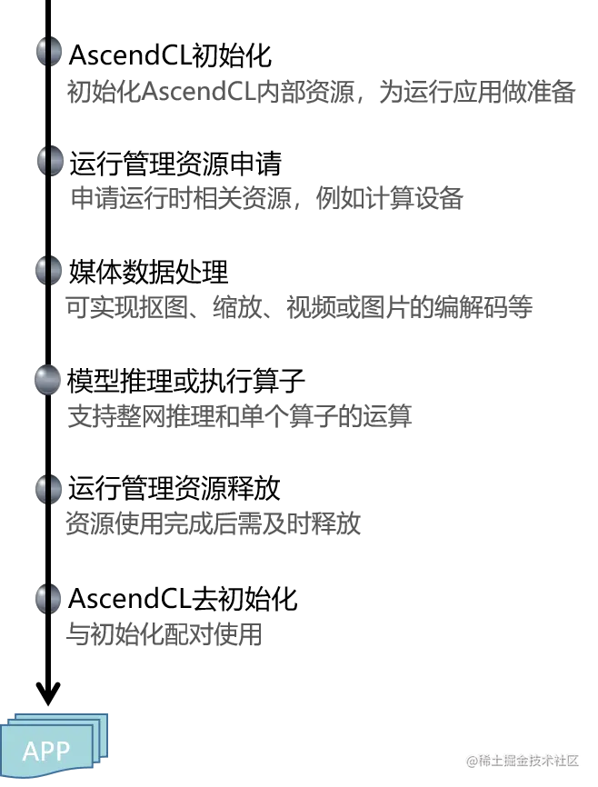 此处以开发应用为例,说明基于AscendCL的接口调用流程。