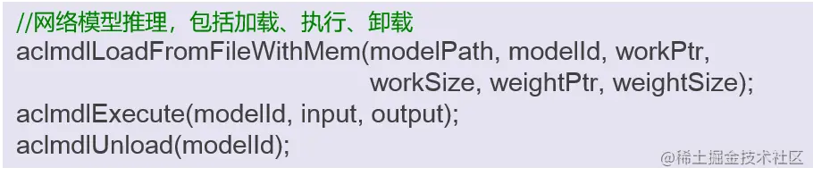 需要实现模型推理的功能,则需要先加载模型,然后执行模型,模型推理结束后,则需要卸载模型。