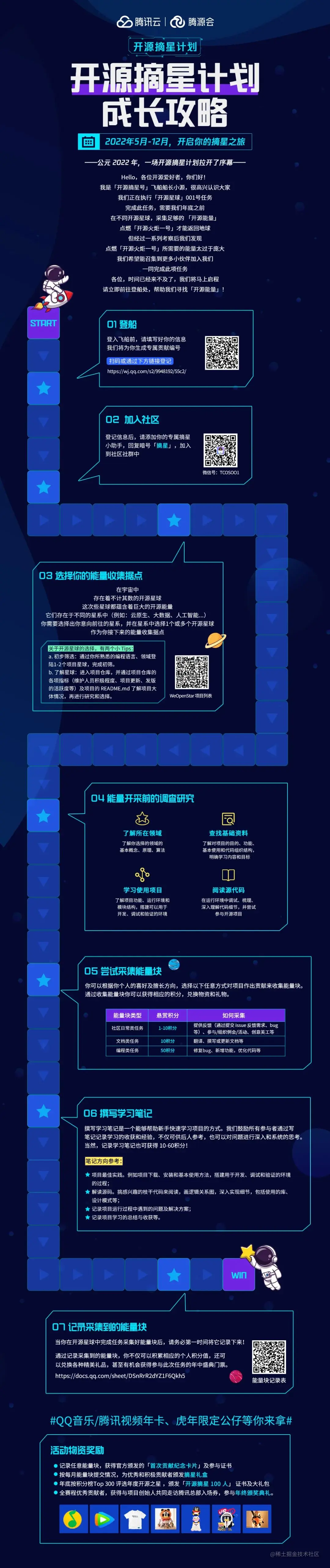 8 月,「开源摘星计划」开展「001号」任务探索,并陆续从几十多个星球传来能量信号,收集这些能量块,就有机会获得证书、贡献卡、鹅厂周边、盛典入场券等礼包。