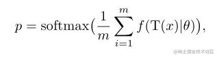 假设有一张图像x要测试,通过一些微弱的随机变换T(·)生成该图像的不同视图。则图像预测p由: