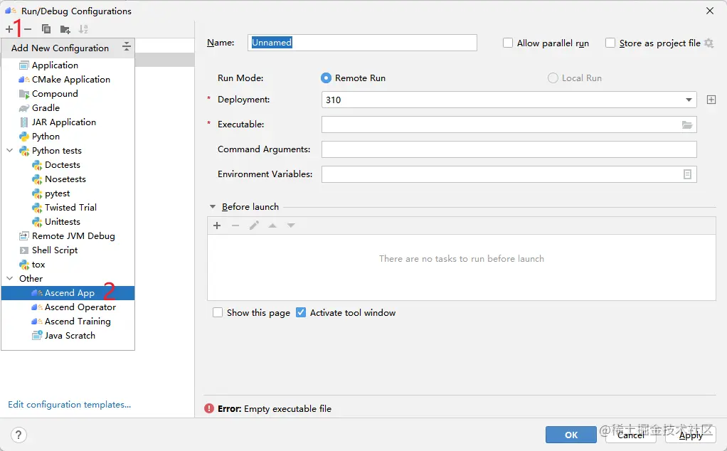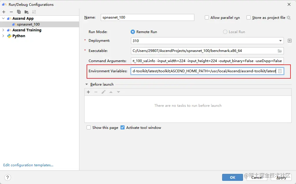 这个错误是因为没有配置好环境变量。因为我们在终端运行它时,一般要先执行一下:source /usr/local/Ascend/ascend-toolkit/set_env.sh,这一步操作在MindStudio中可以通过如图所示的方法配置环境变量解决: