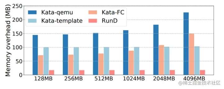 高密部署总结:RunD 支持在内存为 384GB 的节点上部署超过 2500 个 128MB 内存规格的沙盒。且每个沙盒的平均内存占用小于 20MB。